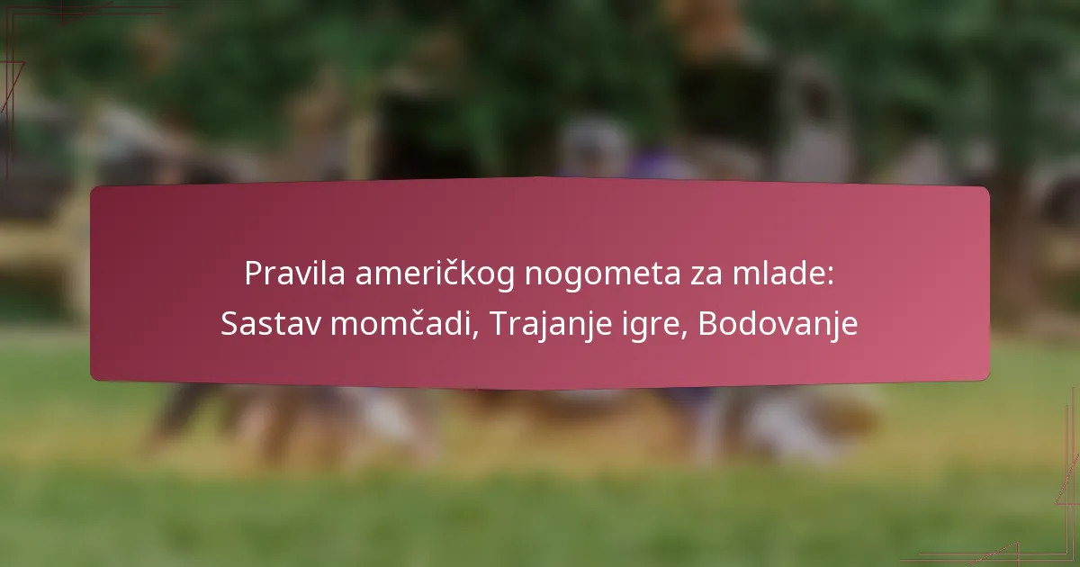 Regulativa američkog omladinskog nogometa postavlja osnovne smjernice za sastav timova, trajanje igre i bodovanje, osiguravajući sigurno i pošteno okruženje za mlade sportaše. Pravila tima variraju ovisno o dobnoj skupini i ligi, dok igre obično traju između jedan do dva sata, strukturirane oko četvrtina ili poluvremena. Bodovanje se temelji na specifičnim igrama, s određenim vrijednostima bodova za touchdown-e i field goal-ove, što čini važnim da svi sudionici razumiju ove dinamike za učinkovitu igru.
