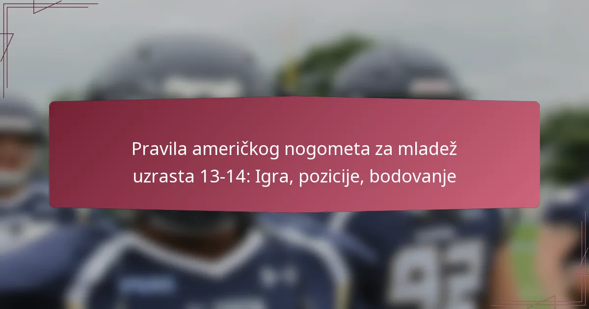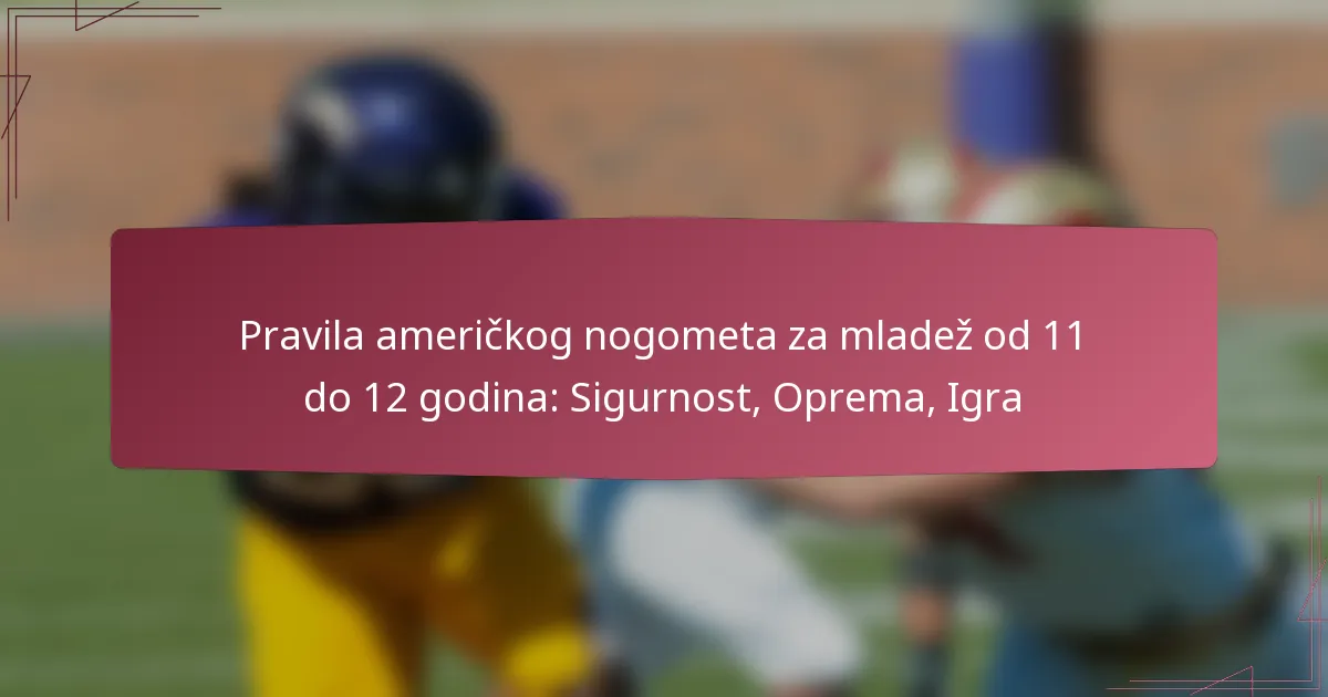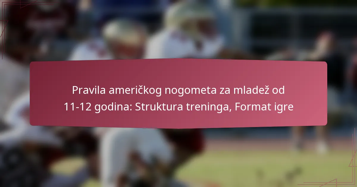 Ključna pravila za američki omladinski nogomet za djecu od 11 do 12 godina prioritetiziraju sigurnost, strukturu i užitak, pokrivajući aspekte poput trajanja igre, sigurnosti igrača i bodovanja. Treninzi bi trebali biti osmišljeni kako bi poboljšali razvoj vještina uz poticanje timskog rada i sportskog duha, osiguravajući zabavno okruženje za mlade sportaše. Format igre uključuje modificirana pravila kako bi se promovirala sigurnost i natjecateljski duh, omogućujući igračima da razvijaju svoje sposobnosti u podržavajućem okruženju.