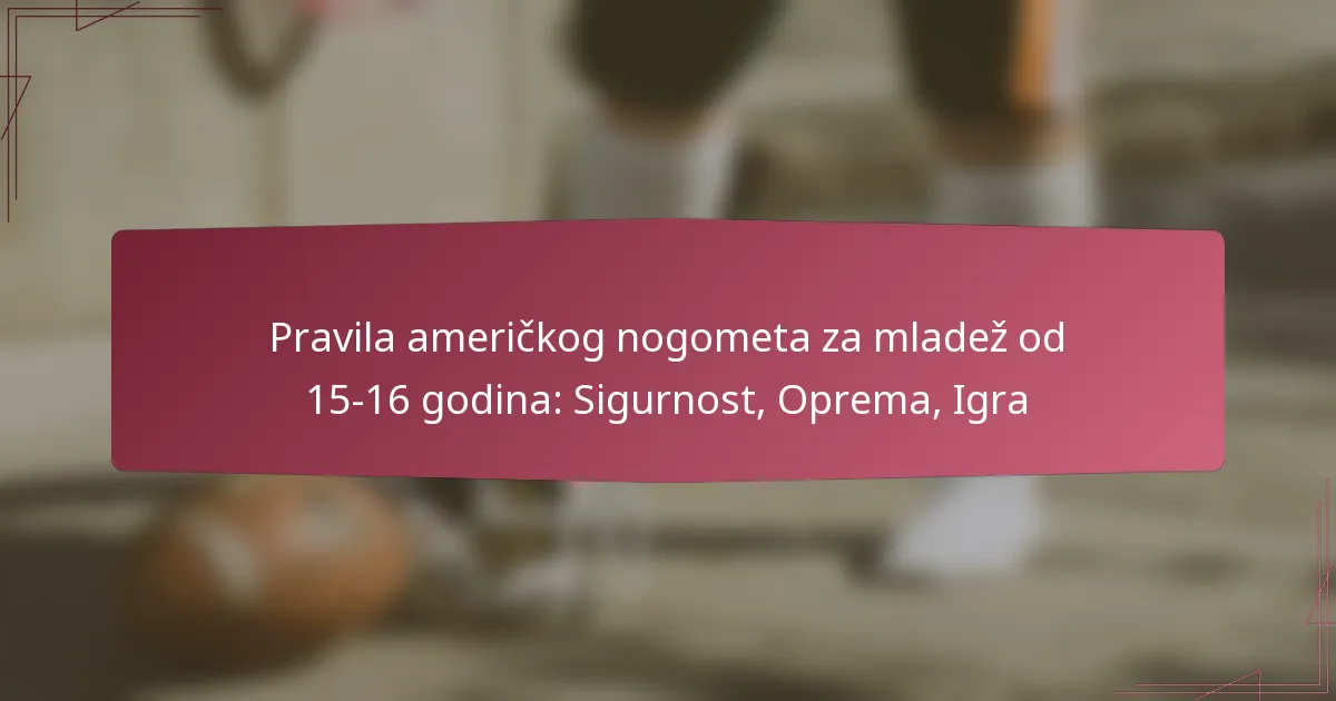 Savezi nogometa za mladež zahtijevaju specifičnu opremu kako bi se osigurala sigurnost igrača i usklađenost s propisima. Osnovna oprema uključuje pravilno prilagođenu kacigu, jastučiće za ramena, zaštitu za usta i odgovarajuću obuću. Treneri bi trebali redovito provjeravati opremu zbog habanja kako bi održali sigurnosne standarde.