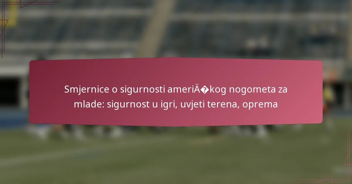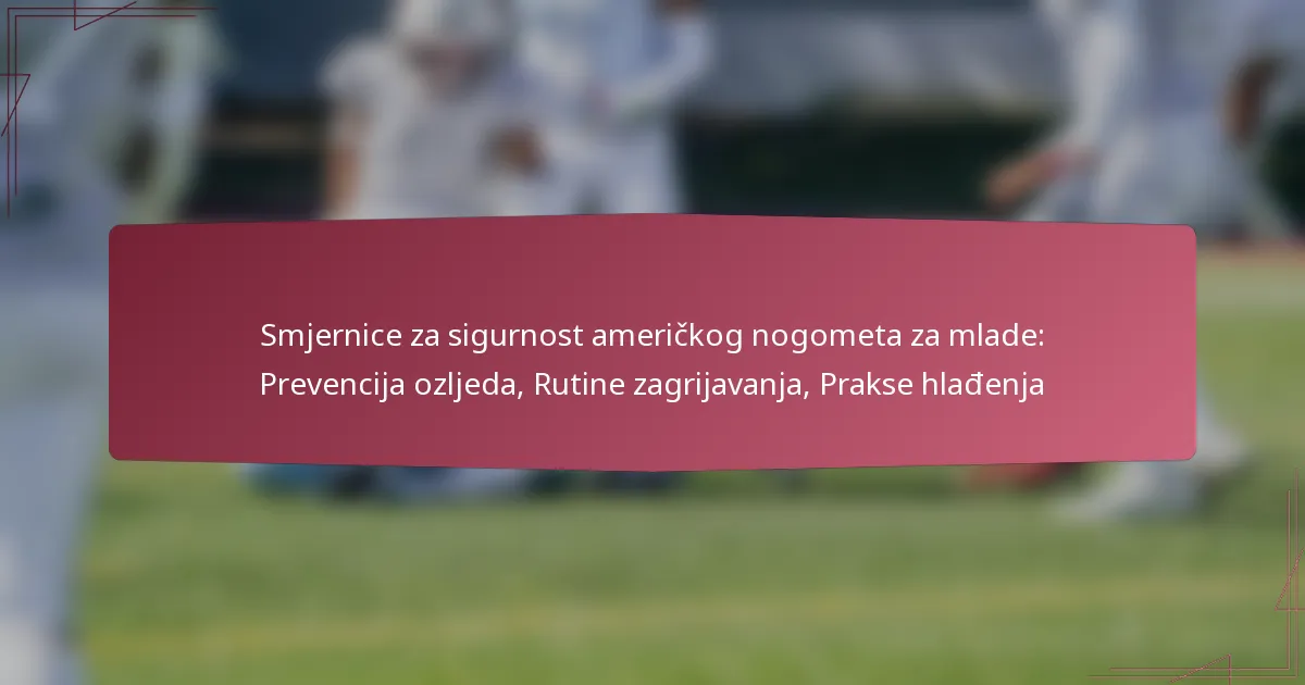 Ključne smjernice sigurnosti za američki mladi nogomet fokusiraju se na zaštitu igrača kroz pravilnu opremu, trenerske prakse i hitne protokole. Ove smjernice imaju za cilj minimizirati ozljede i promicati mentalnu dobrobit među mladim sportašima.